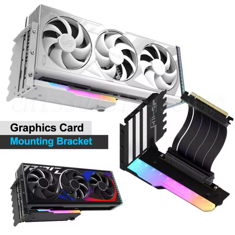 15cm PCI-E4.0 X16 라이저 케이블이 포함된 수직 비디오 카드 지원 키트 GPU 브래킷 홀더 90도 직각 그래픽 카드 브래킷